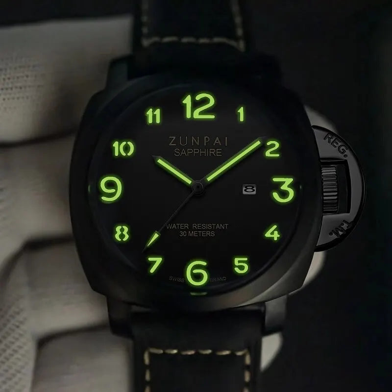 Ponteiros luminosos: permite visualizar as horas mesmo em ambientes de pouca luz.